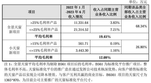 同时,毓恬冠佳表示,其2022年后新项目(全景天窗、小天窗)收入整体占比约为12.39%,主要新项目收入为毛利率更高的全景天窗项目,该收入结构较其目前整体项目的收入结构更利于自身保持良好的毛利率水平。