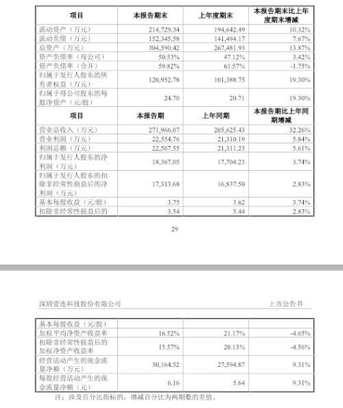 根据壹连科技最新公布的2024年三季报,该公司营业收入约为27.20亿元,上年同期约为20.56亿元,同比增长32.26%;归属于发行人股东的净利润约为1.84亿,上年同期约为1.77亿元,同比增长3.74%。