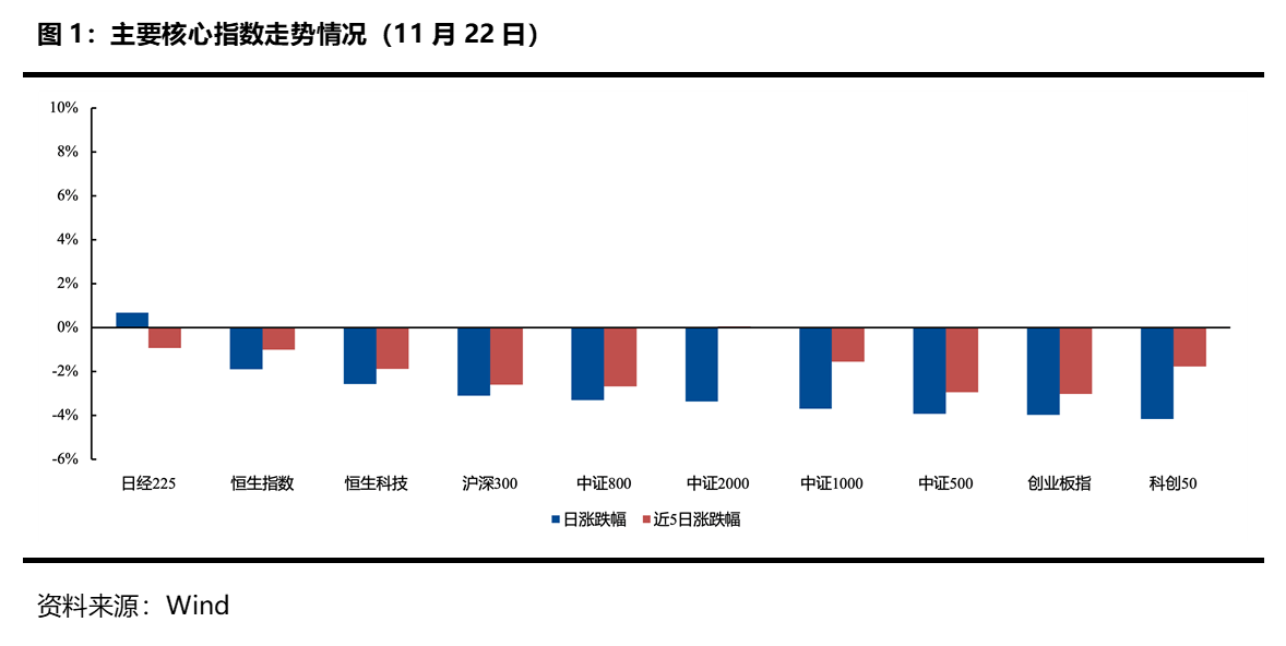 今日日经225、恒生指数、恒生科技走势排名靠前,日涨跌幅分别为0.68%、-1.89%和-2.57%;近5个交易日中证2000、日经225、恒生指数的走势排名靠前,近5日涨跌幅分别为0.05%、-0.93%和-1.01%。