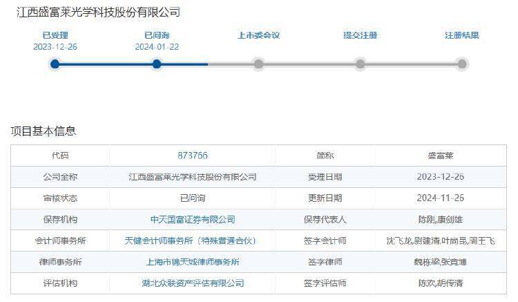 11月26日,江西盛富莱光学科技股份有限公司针对上市进程的第二轮审核问询函进行了回复。