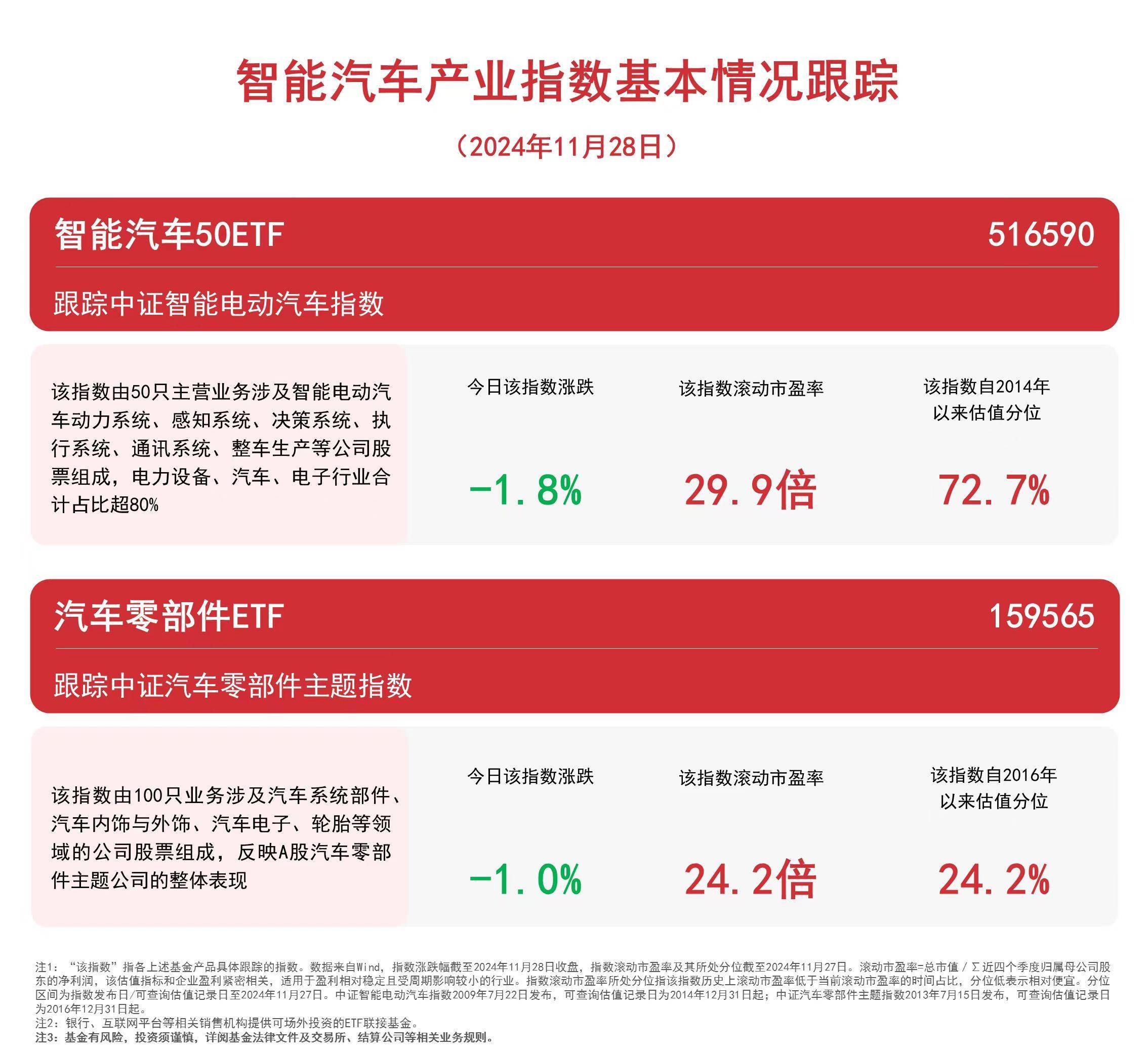 截至收盘,今日中证汽车零部件主题指数下跌1%,中证智能电动汽车指数下跌1.8%。