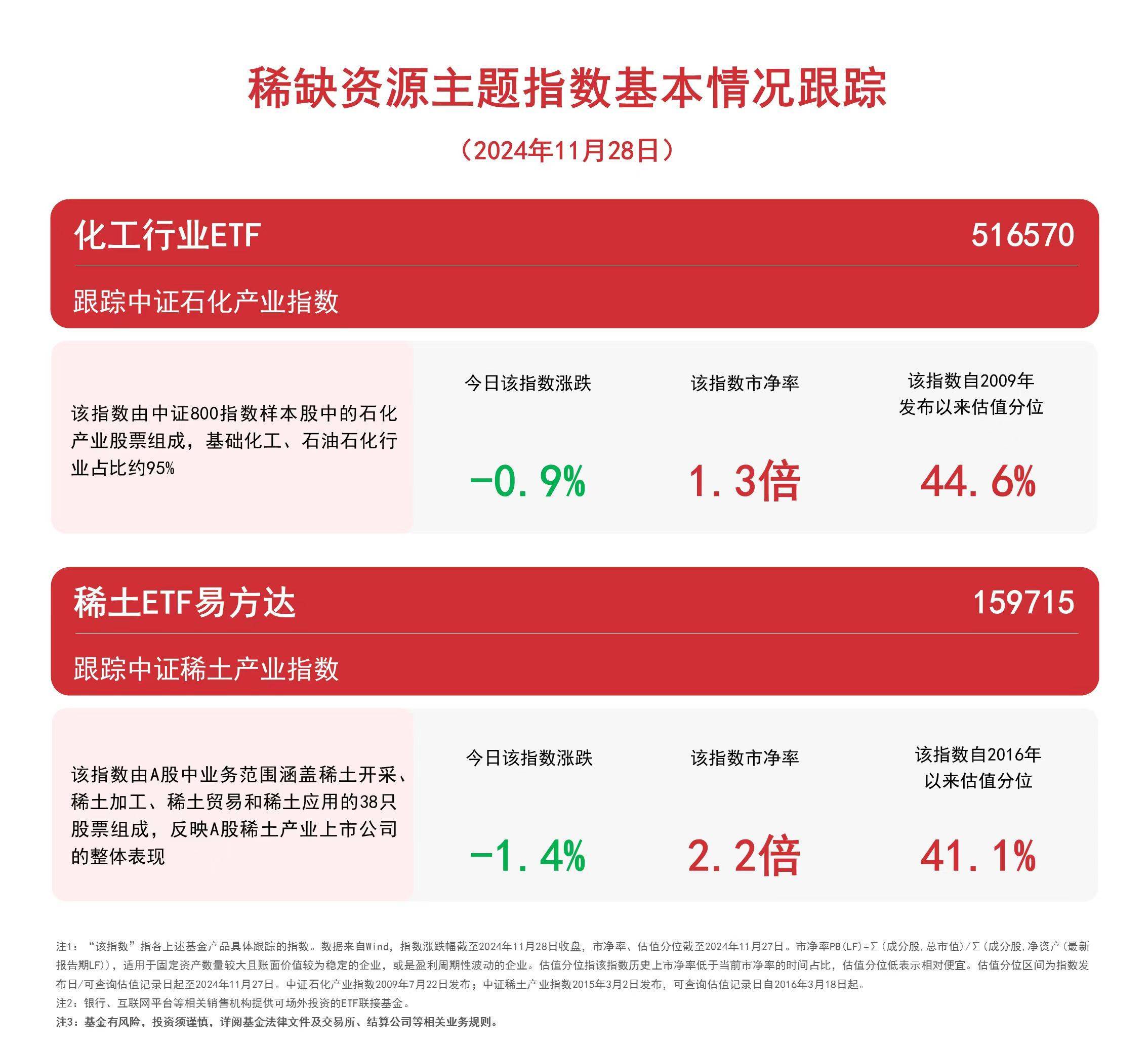 截至收盘,今日中证石化产业指数下跌0.9%,中证稀土产业指数下跌1.4%。