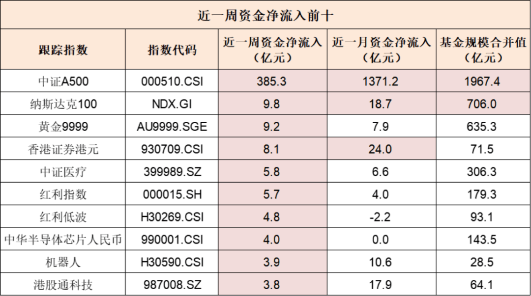 除中证A500外,纳斯达克100、黄金9999、香港证券港元等指数近一周来也被买了超8亿,其中,纳斯达克100、香港证券港元等指数同样也是近一个月以来资金的前十大偏爱指数。