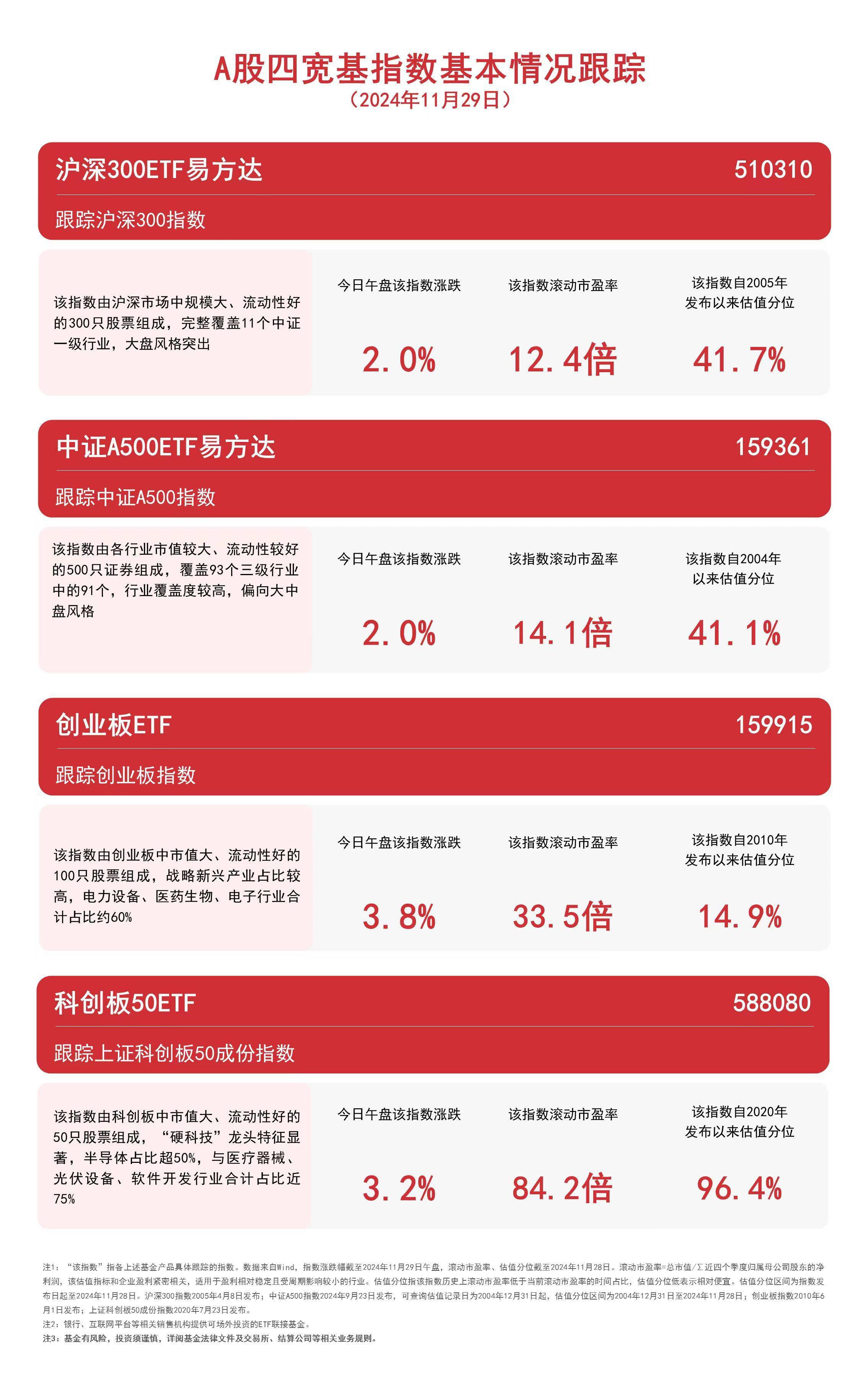 截至午盘,今日中证A500指数上涨2.0%,沪深300指数上涨2.0%,创业板指数上涨3.8%,上证科创板50成份指数上涨3.2%。