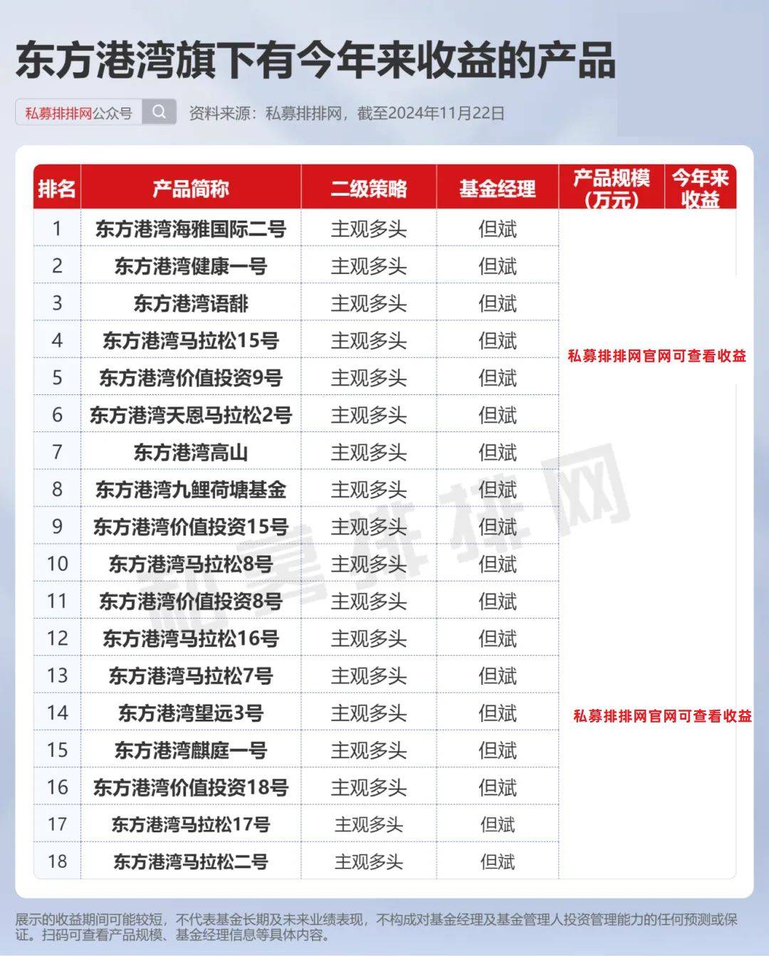 但斌今年曾在私募排排网路演表示,每一种类型基金产品的投资策略原则上都是完全复制的。以此推测,但斌旗下其他产品或有类似布局。私募排排网最新数据显示,截至11月22日,但斌旗下有今年来业绩展示产品共18只,其中6只产品规模超过***亿元,收益均在***%以上。