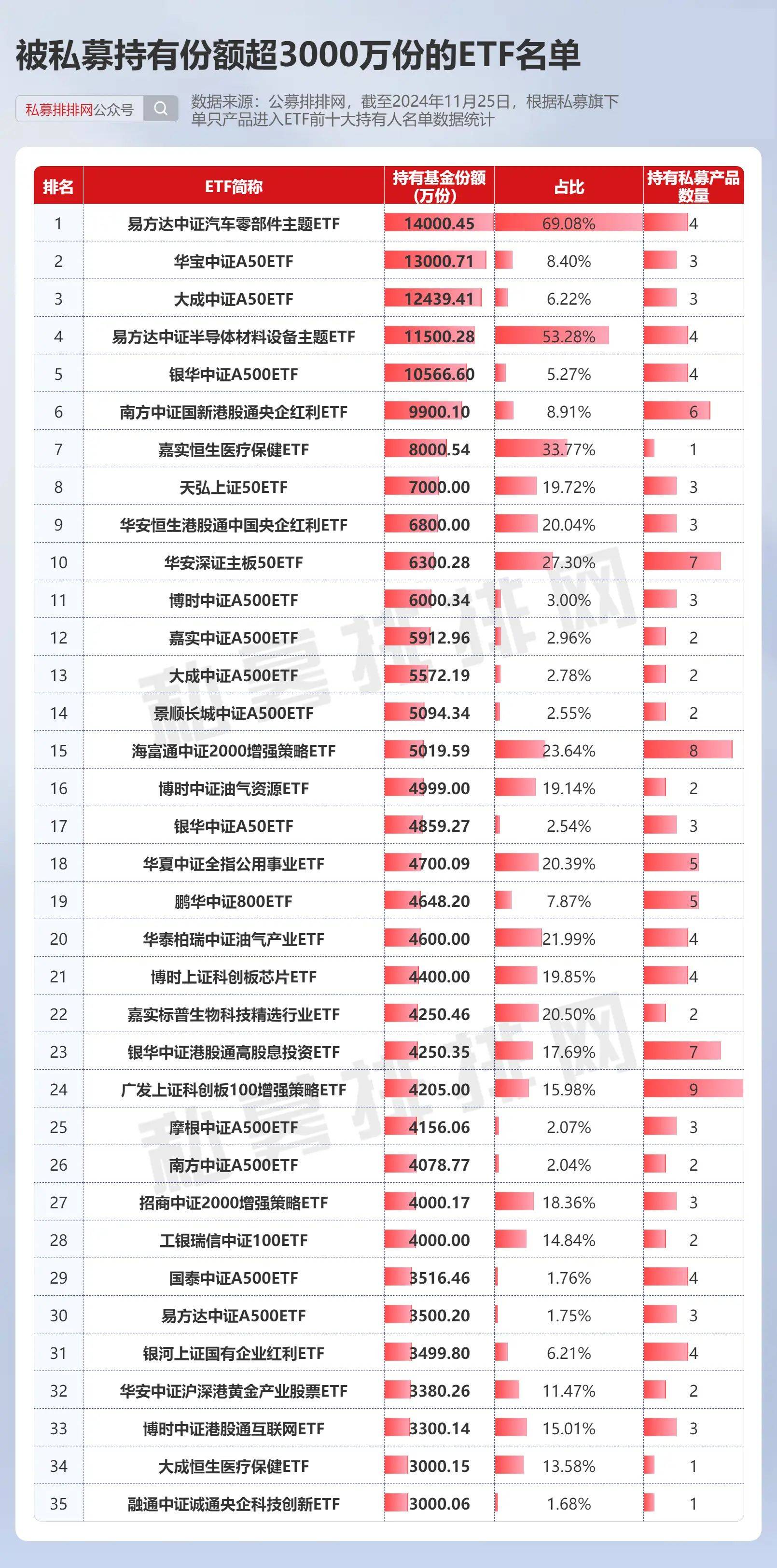 私募排排网最新数据显示,今年来不少私募也大幅买入ETF,中证A500ETF等今年新发行的宽基指数更是被大幅抢购。截至11月25日,今年来共有126家私募出现在年内新上市的109只ETF的前10大持有人当中,合计持有份额30.73万亿份。