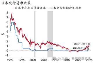 在此背景下,日本央行在2024年3月将政策利率(无担保隔夜拆借利率)由-0.1%上调至0.1%;7月底再次上调政策利率至0.25%,同时提出了减少购买长期政府债券的具体建议,缩减量化宽松规模,正式开启日本货币政策正常化的进程。