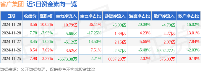11月29日的资金流向数据方面,主力资金净流入10.79亿元,占总成交额36.11%,游资资金净流出6.0亿元,占总成交额20.09%,散户资金净流出4.79亿元,占总成交额16.02%。