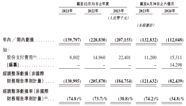 招股书显示,在过去的2021年、2022年、2023年和2024年上半年,佑驾创新的营业收入分别为人民币1.75亿、2.79亿、4.76亿和2.37亿元,相应的净亏损分别为人民币1.40亿、2.21亿、2.07亿和1.12亿元,相应的经调整净亏损分别为人民币1.31亿、2.06亿、1.85亿和0.82亿元。