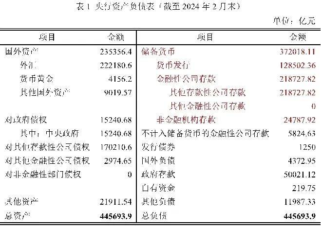在央行资产负债表中,基础货币对应总负债项目下的“储备货币”。根据最新分类,“储备货币”包含“货币发行”(即银行体系外现金+商业银行库存现金)、“金融性公司存款”(主要是其他存款性公司存款,即法定存款准备金和超额存款准备金)以及“非金融机构存款”(即支付机构的客户备付金存款)三个二级科目(见表1)。