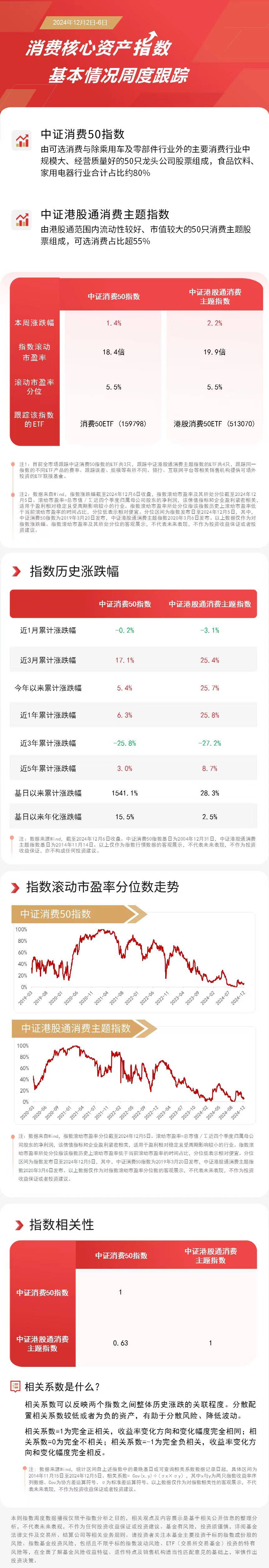 本周中证港股通消费主题指数上涨2.2%,中证消费50指数上涨1.4%。