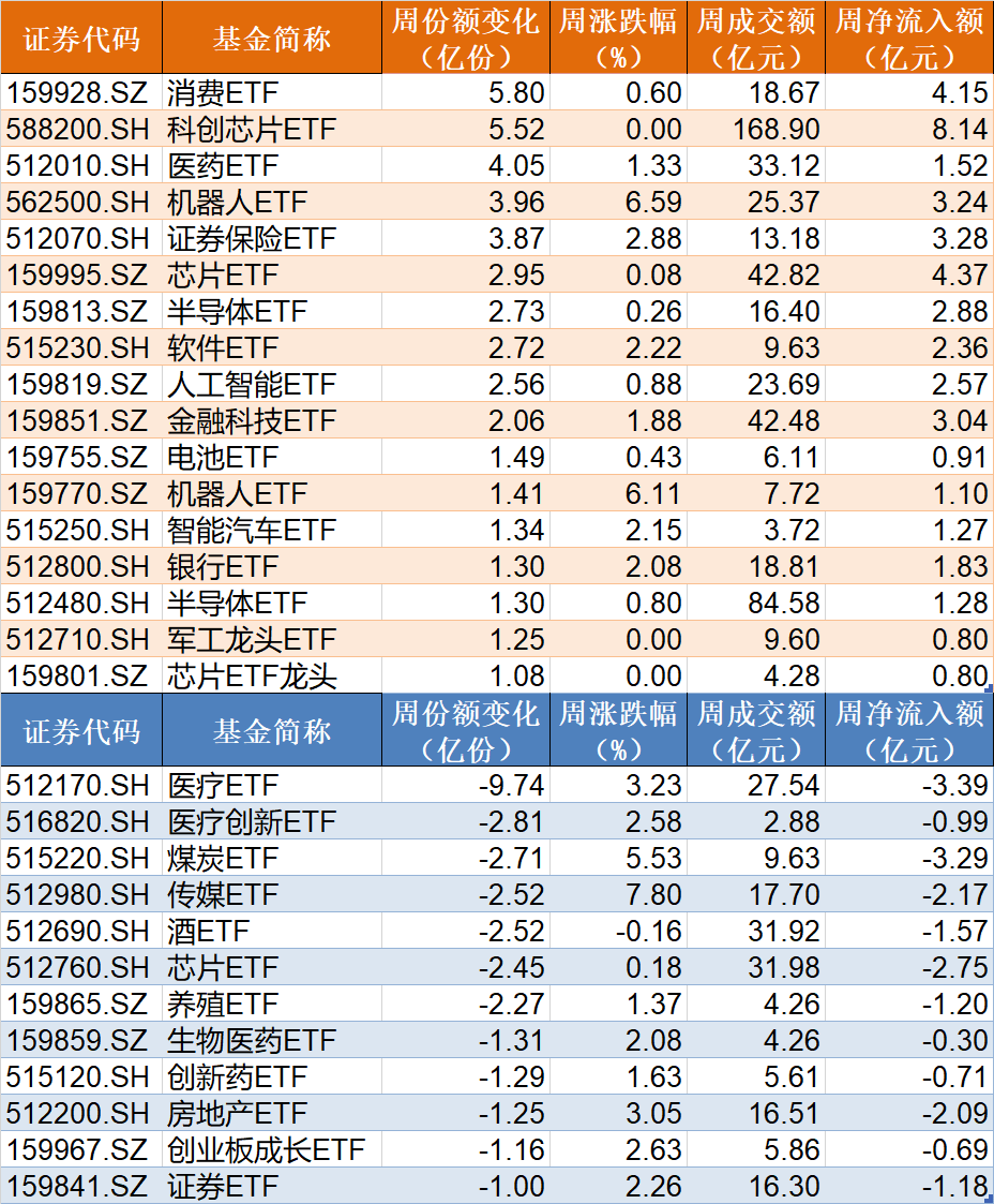 消费ETF、机器人ETF份额创新高