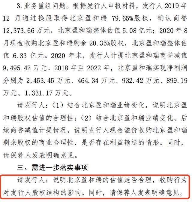 在此期间,北京盈和瑞的估值由2019年12月的5.08亿元增至2020年8月的6.33亿元。2018年至2022年,北京盈和瑞实现净利润分别为2453.45万元、464.34万元、932.42万元、899.19万元、1331.17万元。