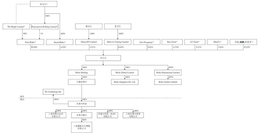 IPO前,董事长、执行董事兼首席执行官朱伟松持股为54.95%,执行董事兼总裁盛晓峰持股为2.01%,布鲁可副总裁黄政持股为0.63%;