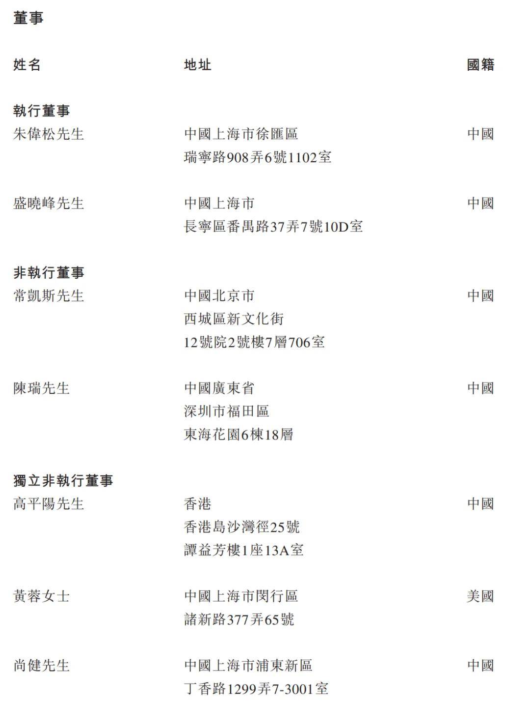 布鲁可执行董事分别为朱伟松、盛晓峰;非执行董事分别为常凯斯、陈瑞;独立非执行董事分别为高平阳、黄蓉女士、尚健。