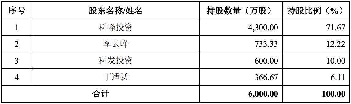 本次上市前,科峰股份的实际控制人为李云峰,其直接或间接合计控制该公司93.89%的股权。据招股书披露,李云峰直接持股12.22%,通过科峰投资持股71.67%,李云峰通过科发投资持股10.00%。