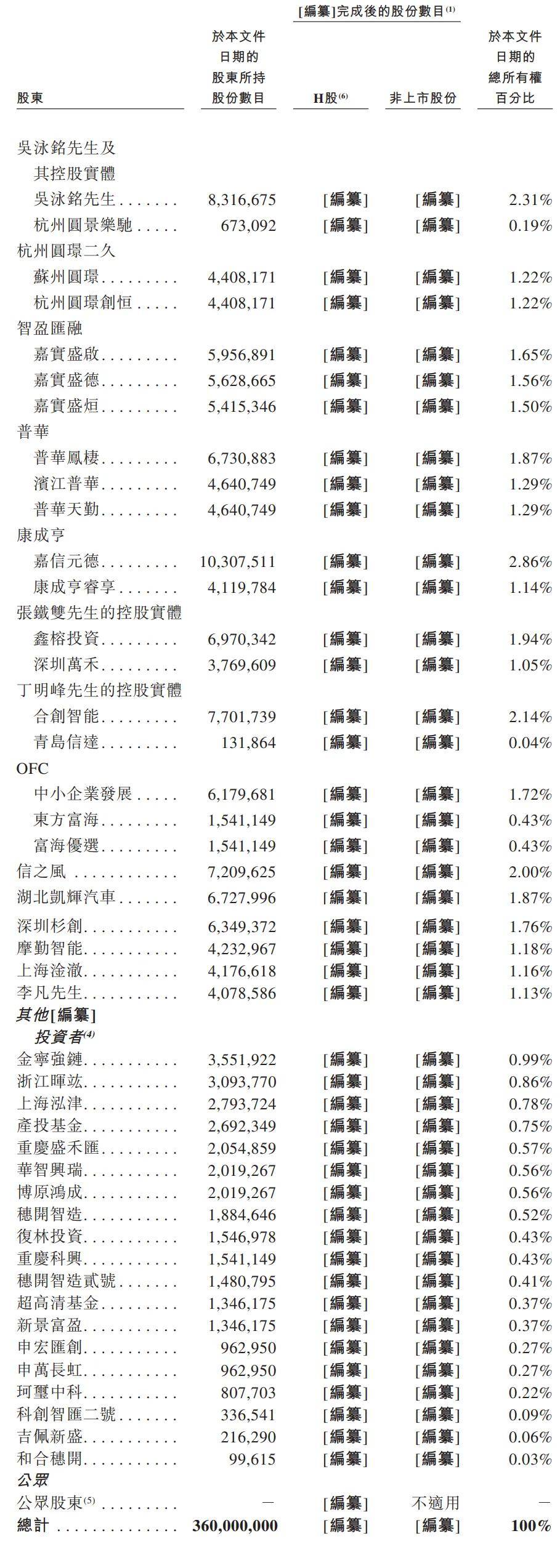 此外,北京四维持股为9.06%,深圳泽奕持股为5.95%,国开制造持股为5.71%,中金资本旗下联通中金持股为2.27%,中金甲子持股为2%,中金常德持股为1.28%;阿里巴巴CEO吴泳铭持股为2.31%,杭州圆景乐驰持股为0.19%;苏州圆璟、杭州圆璟创恒分别持股为1.22%;