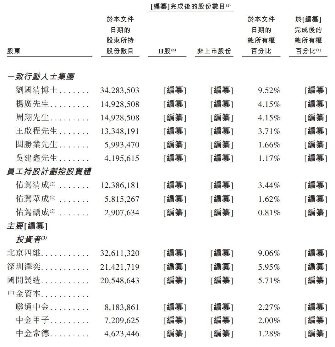 IPO前,刘国清博士持股为9.52%,杨广、周翔分别持股为4.15%,王启程持股为3.71%,闫胜业持股为1.66%,吴建鑫持股为1.17%;员工持股平台佑驾清成持股为3.44%,佑驾众成持股为1.62%,佑驾砺成持股为0.81%;
