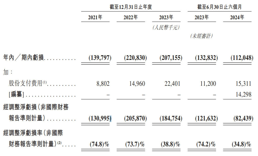 佑驾创新2021年、2022年、2023年经调整净亏分别为1.31亿元、2.06亿元、1.85亿元;2024年上半年经调整净亏为8244万元,上年同期的经调整净亏为1.22亿元。