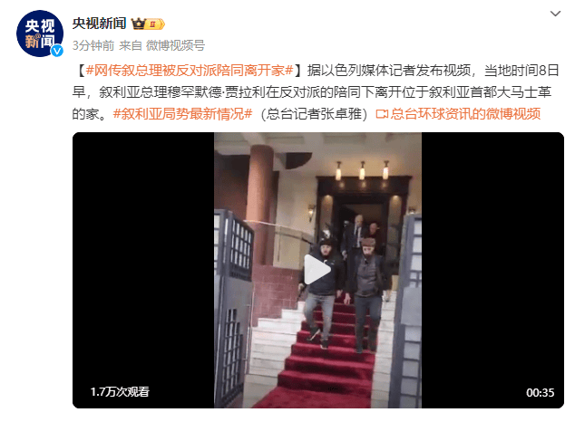 据以色列媒体记者发布视频,当地时间8日早,叙利亚总理穆罕默德·贾拉利在反对派的陪同下离开位于叙利亚首都大马士革的家。(总台记者张卓雅)