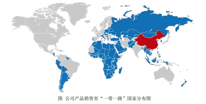 根据说明书,泰凯英海外业务收入占比70%以上,公司产品已覆盖全球六大洲的100多个国家及地区。“一带一路”国家及地区的出口额占公司总出口额的80%左右。