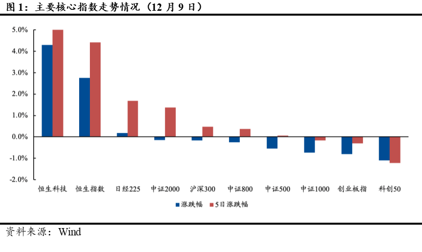图1:主要核心指数走势情况(12月9日)