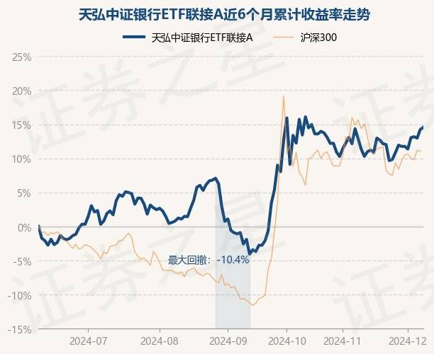 证券之星消息,12月9日,天弘中证银行ETF联接A最新单位净值为1.5609元,累计净值为1.5609元,较前一交易日上涨0.3%。历史数据显示该基金近1个月上涨1.52%,近3个月上涨17.58%,近6个月上涨14.56%,近1年上涨36.71%。该基金近6个月的累计收益率走势如下图: