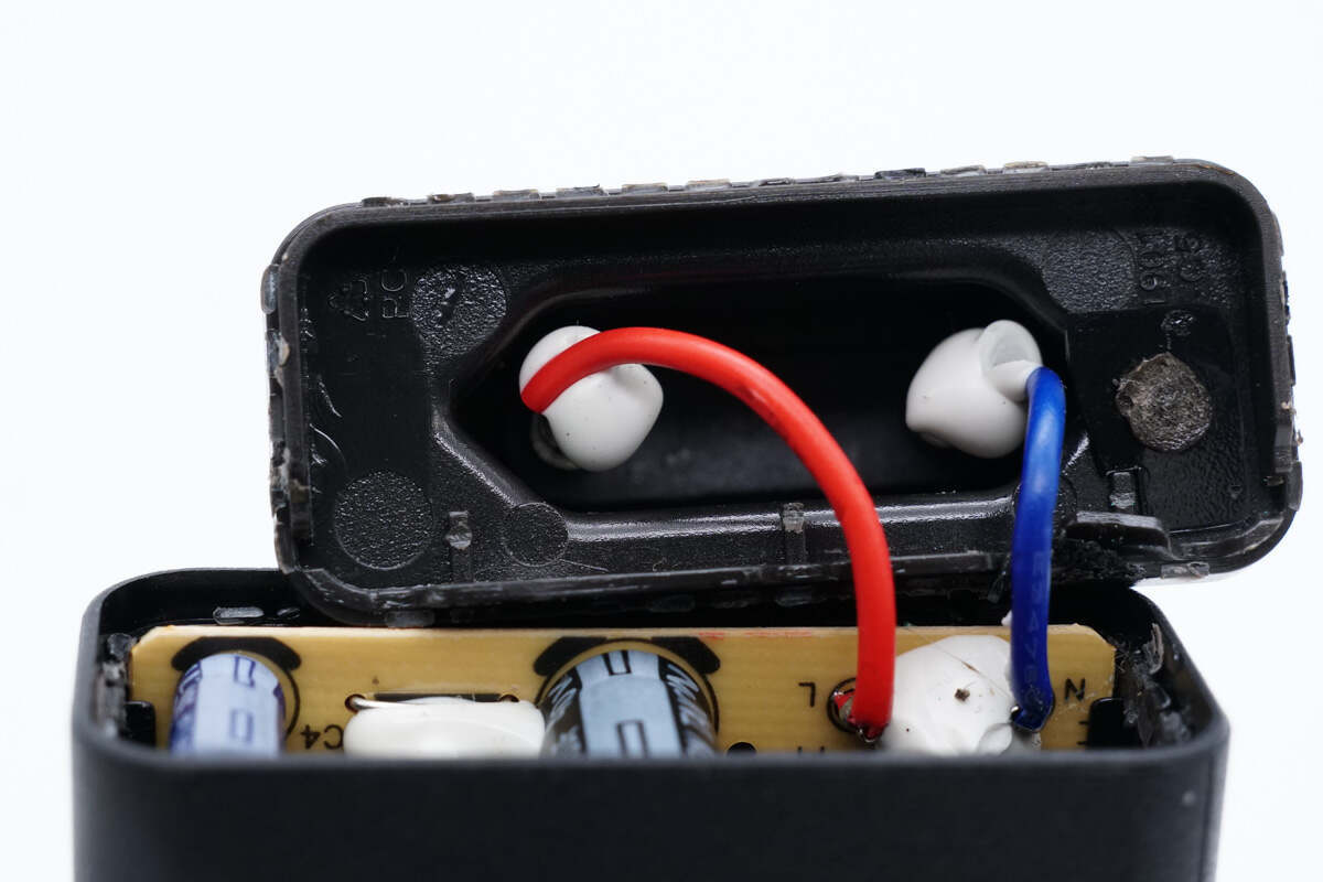 输入端一览,设有保险丝、安规X电容、工字电感、高压滤波电解电容、主控芯片供电电容、变压器等器件,初次级间设有隔离板。