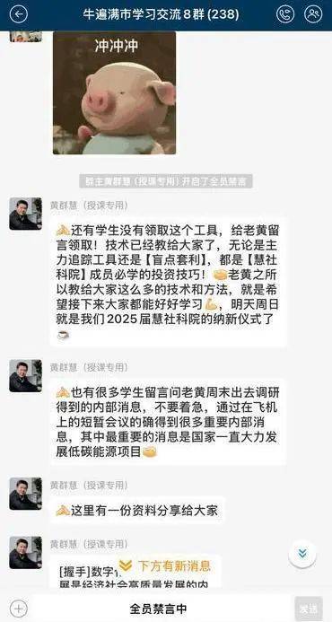 经过一阵子的轮番上课洗脑,朱阿姨坚信群里的人和平台都是真实的。很多“群友”还告诉她“黄老师”深谙投资之道,经常飞全国各地开会获取内幕消息。