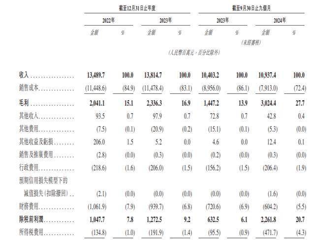 2022年-2024年9月(简称:报告期),创新国际分别录得收入134.90亿元、138.15亿元、109.37亿元;同期净利润9.13亿元、10.81亿元、17.9亿元;归母净利润8.81亿元、10.03亿元、14.41亿元。