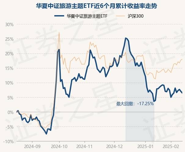 证券之星消息,2月17日,华夏中证旅游主题ETF最新单位净值为0.6669元,累计净值为0.6669元,较前一交易日下跌0.49%。历史数据显示该基金近1个月下跌2.2%,近3个月下跌6.68%,近6个月上涨6.48%,近1年下跌4.39%。该基金近6个月的累计收益率走势如下图:
