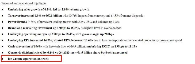 “冰淇淋业务的剥离有望在2025年底之前完成。”目前联合利华已经在走关键流程,包括设立的法人实体等等。在财报上,联合利华还公布最新进展——
