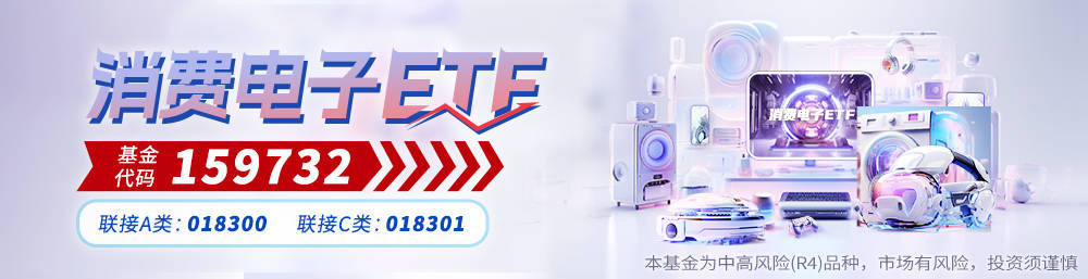 消费电子ETF(159732)跟踪国证消费电子指数,主要投资于业务涉及消费电子产业的50家A股上市公司,行业主要分布于电子制造、光学光电子等市场关注度较高的主流板块。其场外联接基金为,A类:018300;C类:018301。