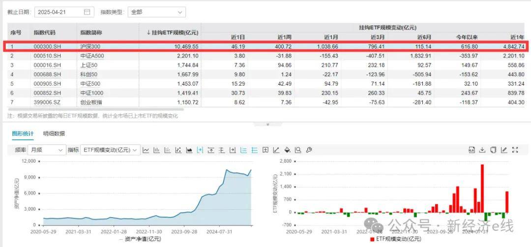 沪深300ETF规模变动一览