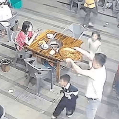 近日,四川成都。一火锅店老板端着油锅正要上菜时,两个幼童刚好跑过。相遇的一瞬间,老板下意识将油锅倒向了自己, 老板手脚烫伤目前已无大碍,幸好两个孩子没有受伤。
