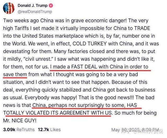 具体来看,5月30日,美国总统特朗普在社交媒体平台“真相社交”发文,指责中国“完全违反了”与美国达成的初步贸易协定,同日美国白宫在社交媒体上发布公告称,“为进一步保护美国钢铁行业免受外国和不公平竞争的影响,从下周起,美国进口钢铁关税将从25%提高至50%。”
