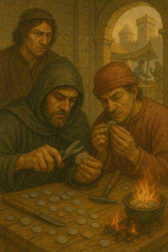 在中世纪,对货币的信任是商业、主权和社会秩序的基础。由国王铸造并经神权认可的货币,其完整性支撑着欧洲各地的封建经济。然而,即使在这样的体系下,货币价值并非抽象固定——它取决于每枚硬币中贵金属的重量和纯度。这创造了一个难以抗拒的剥削机会。硬币剪边,即从硬币边缘削去少量金属的欺诈行为,成为中世纪最广泛和最有组织的经济犯罪之一。这种犯罪通常由秘密网络——即硬币剪边“团伙”——进行,它既具有极大的破坏性,又以难以执法而闻名。这种普遍性迫使君主们反复重新铸造货币,打击犯罪分子,并应对一种反映了中央权威与分散化犯罪企业之间张力的金融犯罪。