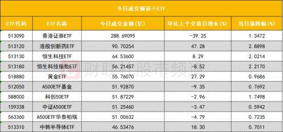 从成交额前十的ETF来看,香港证券ETF(513090)成交额位居首位,港股创新药ETF(513120)成交额位居次席。