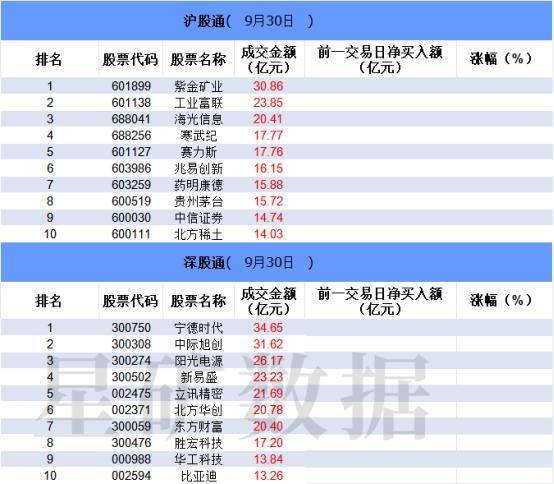 从沪股通前十大成交个股来看,紫金矿业位居首位;工业富联和海光信息分居二、三位。