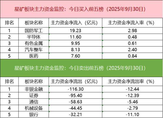 板块资金流出方面,非银金融板块主力资金净流出居首。