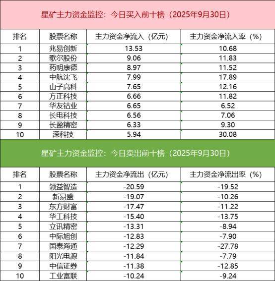 主力资金流出前十的个股所属板块较为分散,领益智造净流出居首。