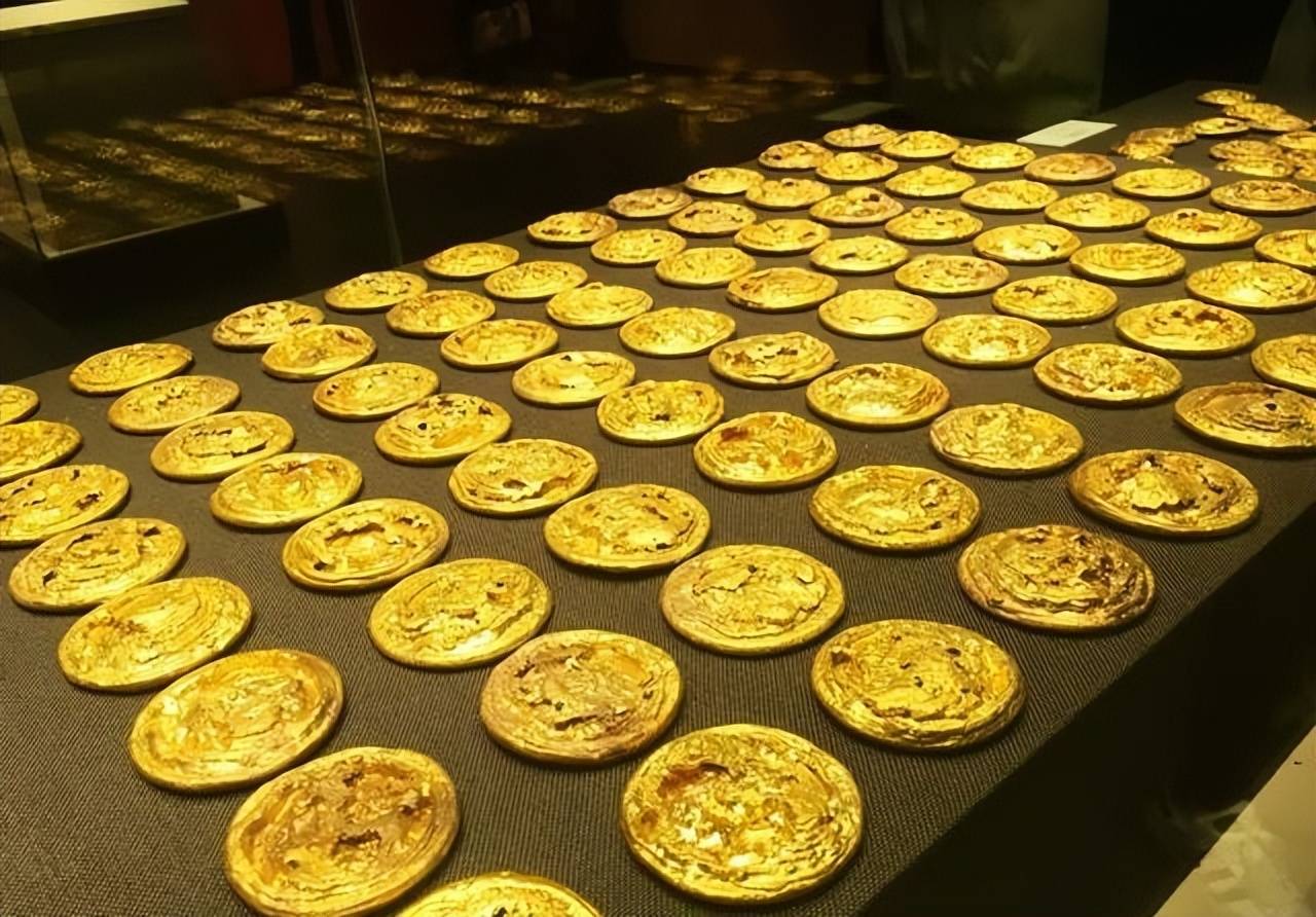 再看考古实物,江西南昌的海昏侯刘贺墓出土的金器就特别典型。墓里挖出金饼三百八十五枚、马蹄金四十八枚、麟趾金二十五枚、金板二十块,总重两百三十多斤,换算成西汉的斤差不多四百六十斤,金含量高达百分之九十九,基本是纯金。这批东西让现代人直观感受到西汉黄金的规模。西汉黄金不光数量大,用处也广,赏赐、馈赠、祭祀、罚金、收税,到处都用得上,流通起来特别活跃。