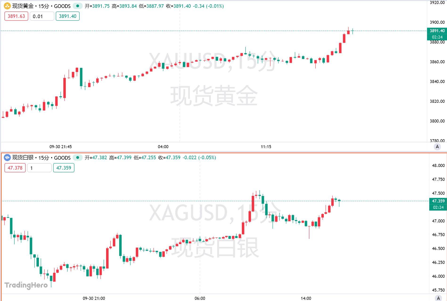现货黄金连续第五天上涨,一度站上每盎司3890美元。纽约期金早些时候已触及3900美元/盎司。与此同时,现货白银上涨逾1%,至每盎司47.5美元附近,距离历史高点不足5%。这种相对廉价的贵金属今年涨幅已超60%,其上涨一方面得益于推动金价上涨的部分宏观因素,另一方面也因多年供应短缺问题加剧导致市场持续紧张。