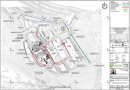 目前全面启动的矿山基础建设包括场地平整、矿区道路修建、综合水资源管理系统、挡土墙、水坝及加工厂土建等诸多环节,其中包括5个大型土方平台、721米道路、1,355米清污分流渠道、10,000立方米混凝土水坝、135立方米CIL堆筑挡墙以及5,540立方米厂区土建工程。