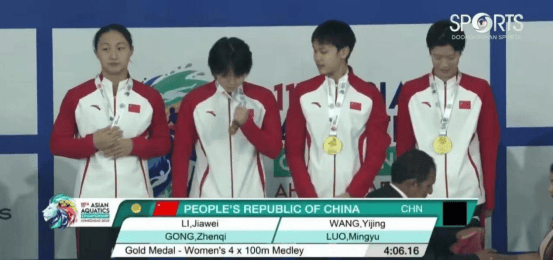 ▲女子4x100米混合泳,龚真琦(左二)和队友领奖。图源网络
