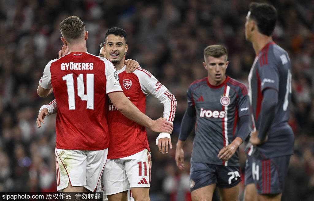 在欧冠小组赛对阵奥林匹亚科斯的比赛中,阿森纳主力中后卫加布里埃尔在...