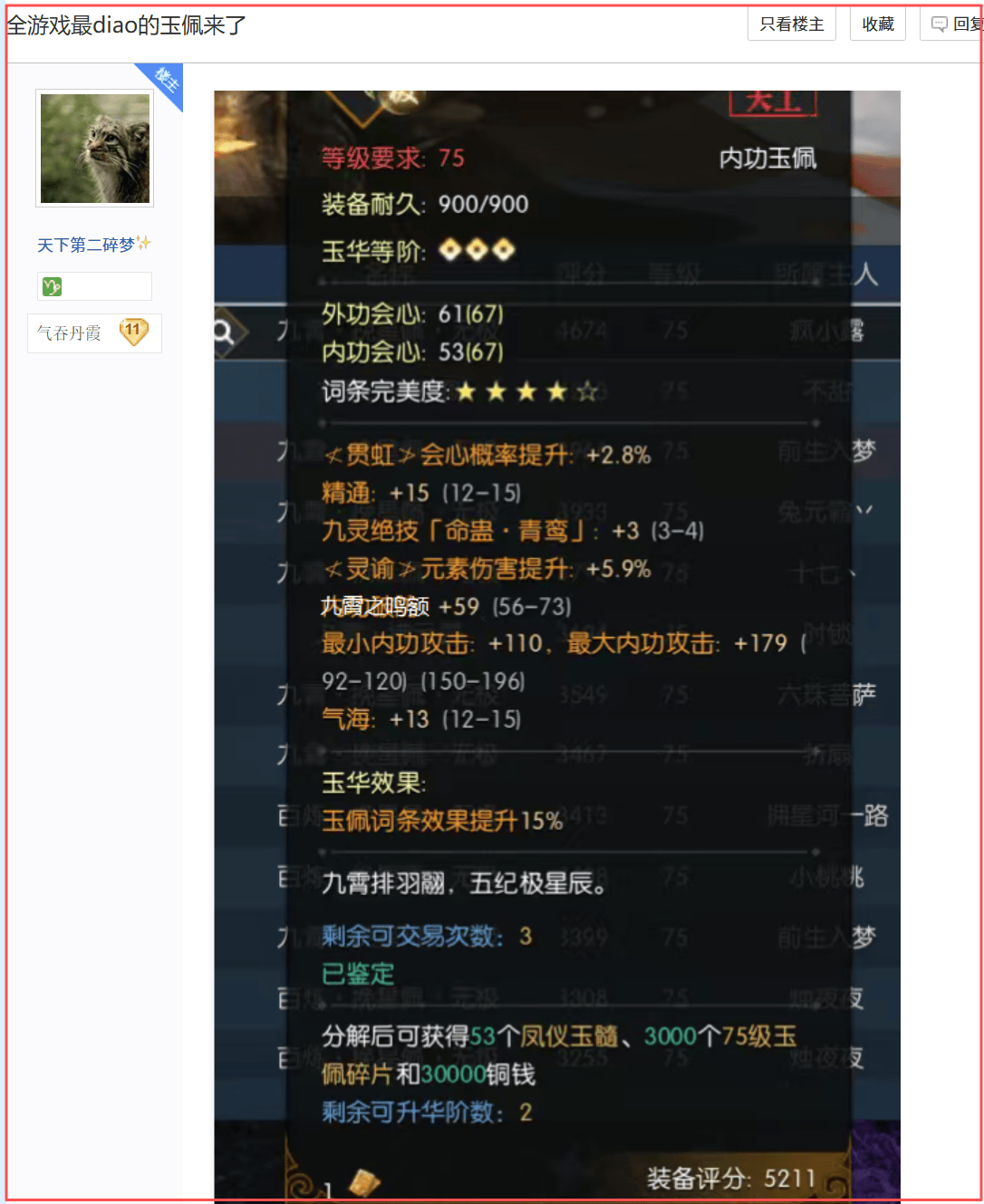 促成这一局面的,是黄金服最新的75级玉佩系统。