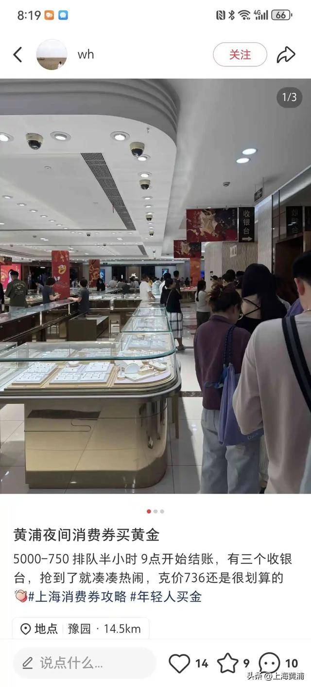 在社交媒体上,在黄浦排队买黄金已经成为常态。话不多说,先上图。