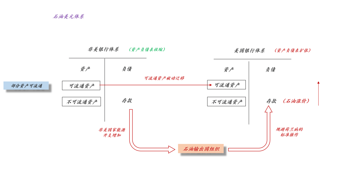 1、当原油价格上涨时,存款从非美体系涌入美国体系的趋势加强;