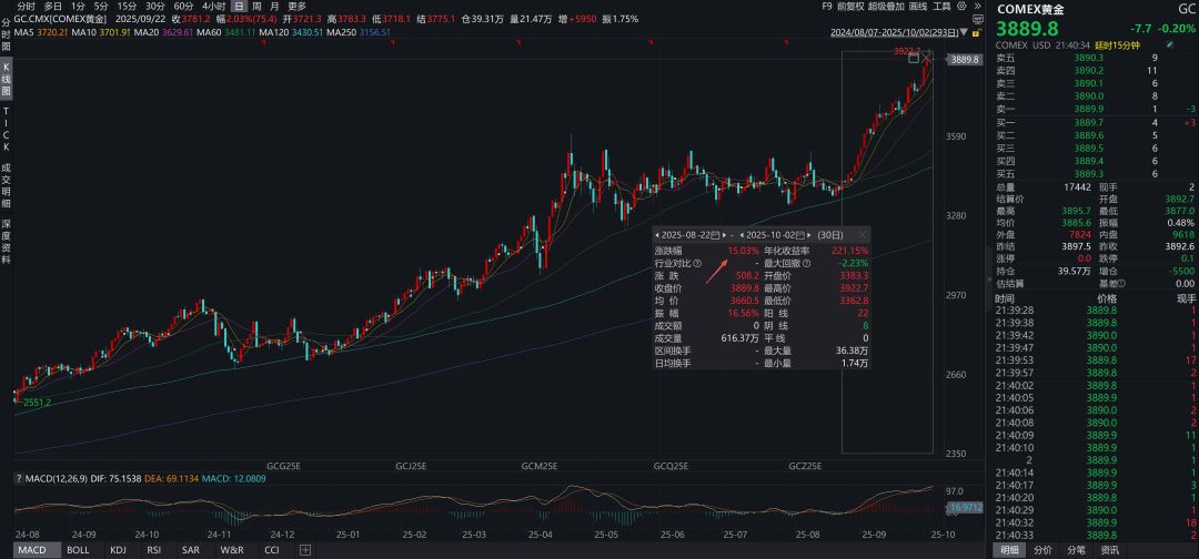如上图所示,COMEX黄金在8月22日之后继续上涨了15%。